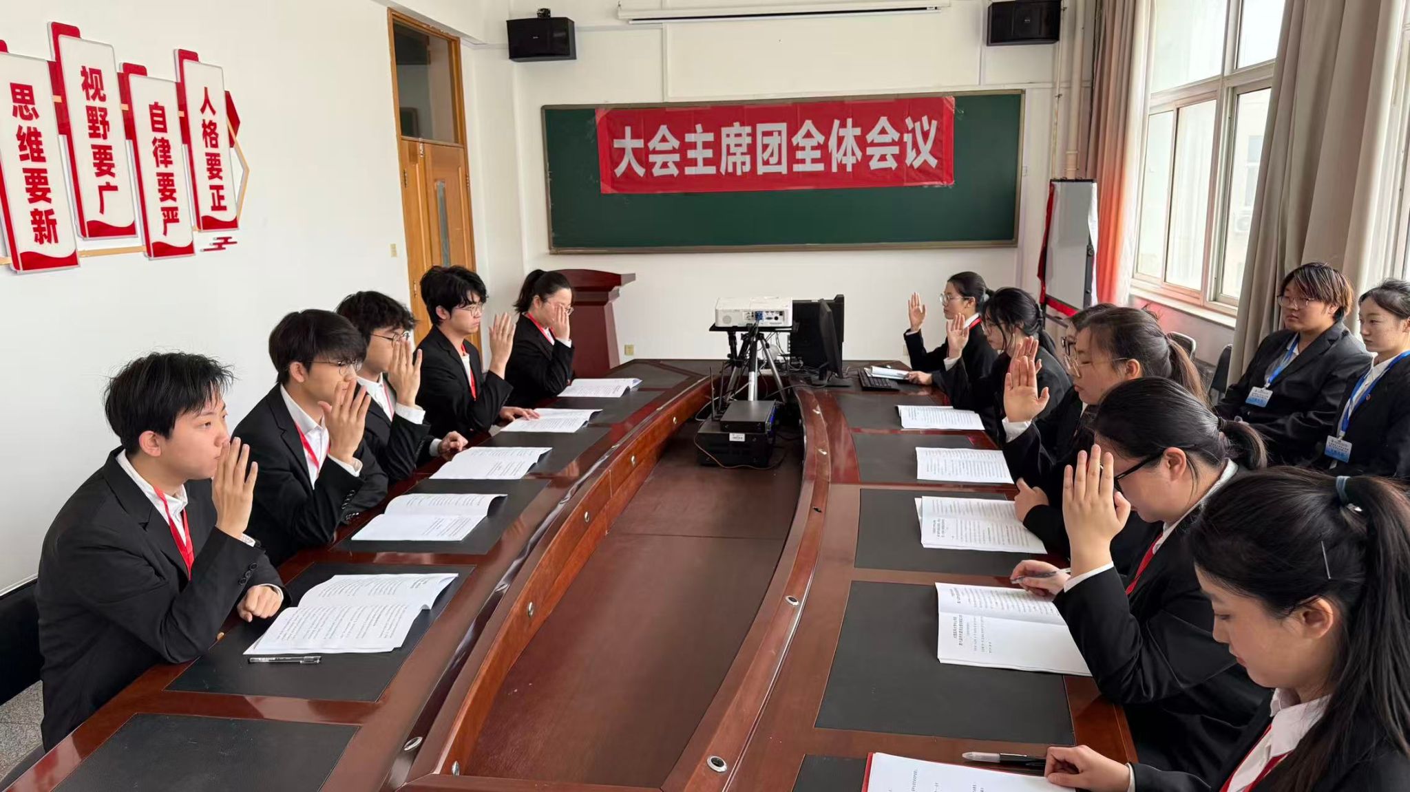 全体会议期间,通过了《星空电竞下载app第六届学生委员会委员、学生会第二十四届主席团选举办法(草案)》,通过了学生委员会委员候选人、总监票人、监票人、总计票人、计票人名单。