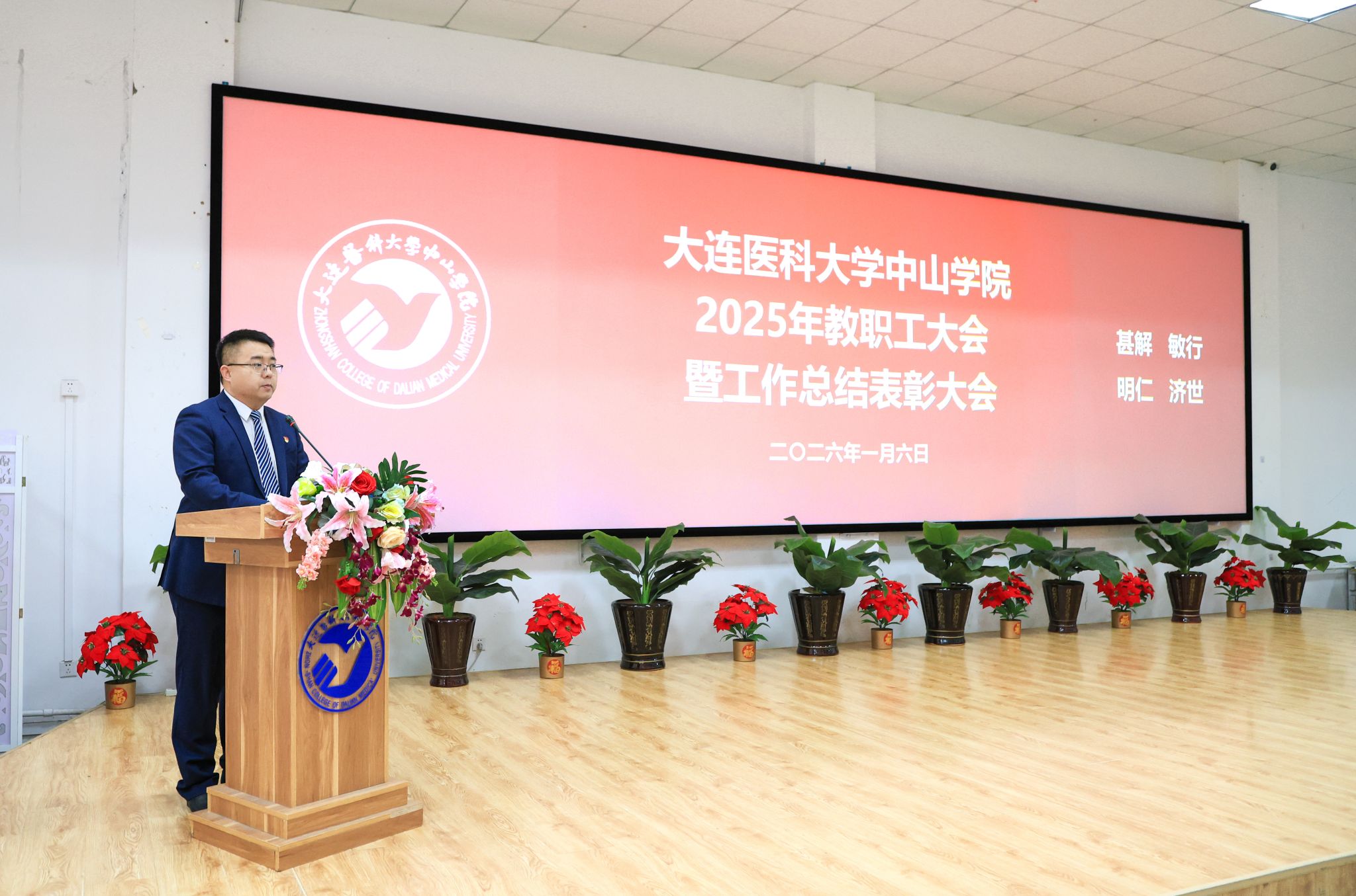 2025年是“十四五”规划收官之年,是全面振兴新突破三年行动决胜之年,也是“十五五”规划谋篇布局之年。为全面总结2025年度工作成效,统筹部署2026年工作任务,我校于1月6日在学术报告厅召开2025年教职工大会暨工作总结表彰大会。大连医科大学党委常委、副校长邵淑娟,我校领导班子成员出席大会,全体教职工参加大会。大会由院长助理刘大粼主持。