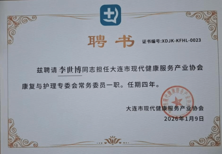 2026年1月9日,大连市现代健康服务产业协会康复与护理专委会成立大会召开。我校康复医学院副院长高梦君、国际护理学院常务副院长李世博当选专委会常务委员,学校附属康复医院常务副院长刘传霞当选委员,充分体现了我校在康复医学与护理学领域的学科实力和行业影响力。
